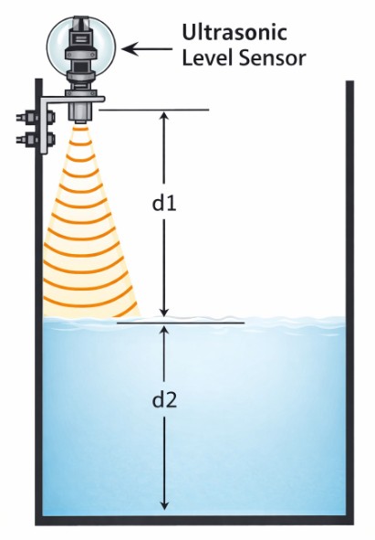 Como la velocidad del sonido en el aire es conocida, el sensor calcula la distancia entre él y la superficie del agua. Si la distancia es grande, el nivel es bajo; si la distancia es pequeña, el nivel es alto.