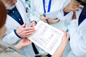 La enfermera localiza fácilmente al paciente y le ofrece asistencia.