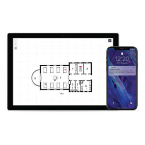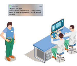 La enfermera recibe una alerta de texto y el tablero muestra la ubicación de la alerta.