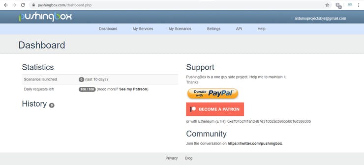 Siga los procedimientos a continuación para configurar la API Pushingbox y hacer que este proyecto funcione como esperaba.